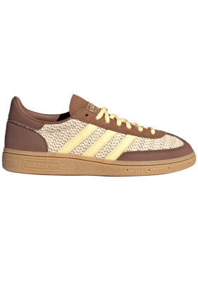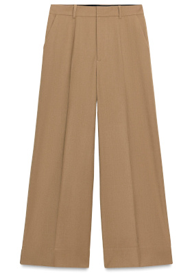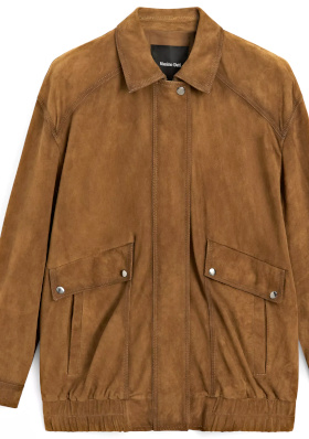 Le foulard se porte en bandeau dans les cheveux noués en chignon. Le jaune pâle du polo permet de faire respirer le camaïeu de marrons constitué par le trio blouson/pantalon/baskets. Le pantalon se casse généreusement sur les baskets. La féminité des boucles d'oreilles contraste avec l'ampleur masculine du blouson.