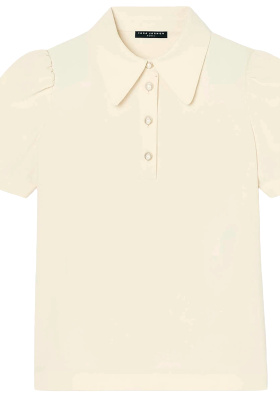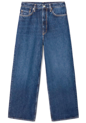 Le jean large doit être choisi de manière à se casser généreusement sur les souliers. La légèreté du caraco est patinée par la robustesse des derbies. Le trio monochrome blouson/gilet/caraco mise sur des textures différentes pour faire respirer l'ensemble. Le gilet se porte ouvert.