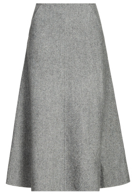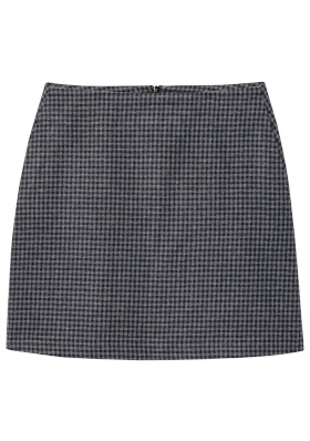 Le drap de laine presque sévère de la jupe est adouci par la maille moelleuse du pull. Les semelles épaisses des bottines permettent de délaisser le look "écolière" au profit d'une dégaine plus utilitaire. Les collants opaques (en continuité avec la teinte des bottines) permettent d'allonger la jambe visuellement. Le fin serre-tête bijouté permet de contraster avec le volume du blouson et avec la douceur du pull.