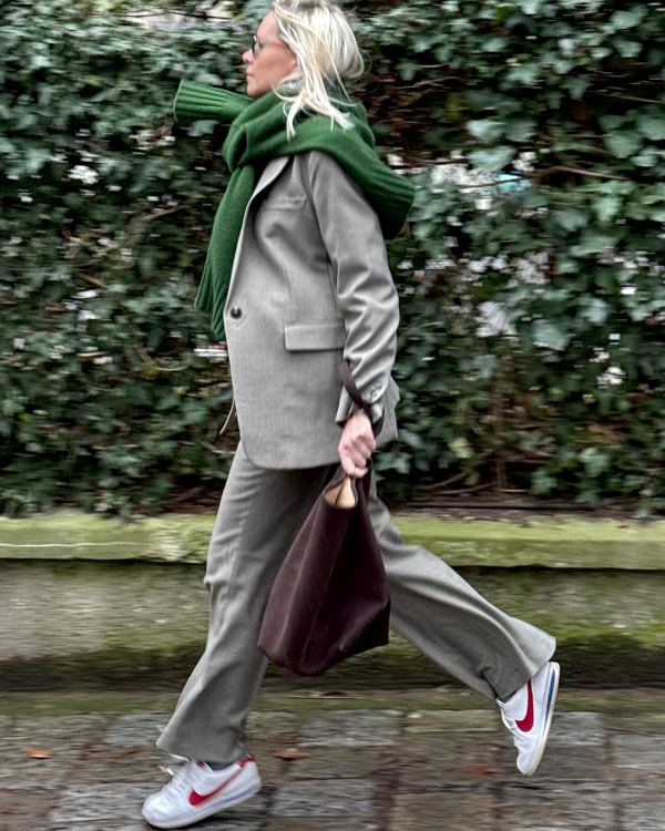 User et abuser du trio bleu marine/kaki/blanc (voir ici). Se familiariser doucement avec le concept du pantalon Aladin (voir ici). Mixer rayures verticales, chevrons et imprimé léopard (voir ici). Booster les camaïeux de verts grâce à un combo de textures douillettes (voir ici). Affûter le duo "robe sur jupe" en enfilant un blazer plutôt qu'un gilet mou (voir ici). Marier l'ampleur d'un gilet dense à la légèreté raffinée d'un pantalon large imprimé (voir ici). Illuminer le duo bleu marine/marron clair via une touche de bleu roi (voir ici). Ne pas oublier que les casquettes NY sont idéales pour "upgrader" la dégaine d'un look matinal (voir ici). Chausser une paire de Nike Cortez pour dynamiser ses costumes (voir ici). Superposer encore et toujours (voir ici). Marier blazer long cintré et jean large (voir ici).