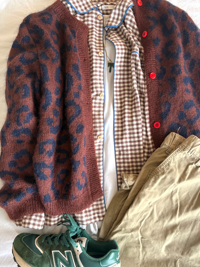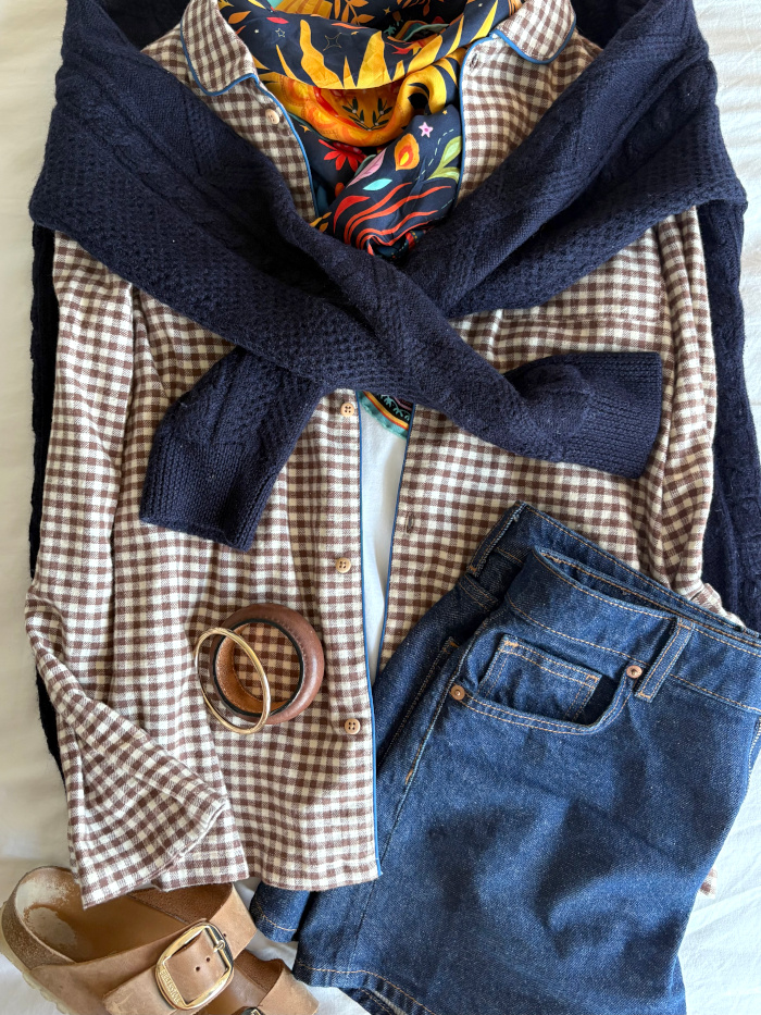 Alors oui, c'est une chemise de pyjama. Oui, je sais que j'aurai droit à des réflexions si je la porte dans l'une de mes vidéos. Mais c'est ainsi : j'adore ce que dégagent ces pièces à la frontière du confort et du style, qui sentent bon le chocolat chaud, les vieux livres illustrés, les petits matins glacials, un art de vivre un peu désuet… J'avais d'ailleurs craqué à Rome il y a quelques années pour une veste de pyjama dans les mêmes tons, qui avait beaucoup divisé ici-même, mais qui reste encore aujourd'hui l'un de mes vêtements préférés.