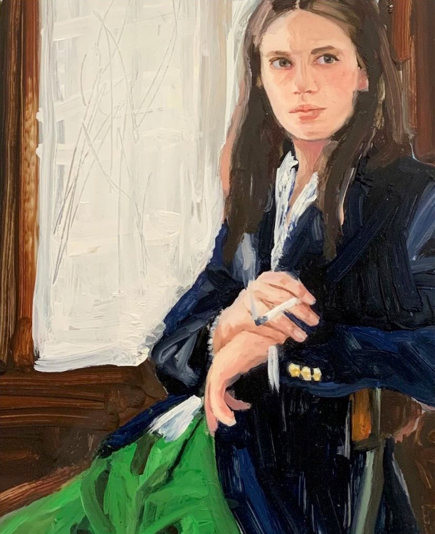 Ce portrait peint par Lucie Geffré nous donne envie de fusionner vert sapin et laine moelleuse, puis de faire pétiller la sobriété de l'ensemble via . Il déclenche aussi en nous cette délicieuse pulsion hivernale nous invitant à aller nous lover au fond d'un café avec un chocolat mousseux et un carnet de croquis. Plus inspirantes que les mannequins de Vogue Paris, les héroïnes de Karyn Lyons distillent un irrésistible mélange entre style bourgeois et désinvolture nonchalante. Sur cette toile, associer un pantalon vert gazon trop grand au duo + relève du coup de génie stylistique. Mêlant chaleur fleurie et douceur maternelle, ce tableau de Joan Cardona Lladós invite à dénicher un immense châle brodé de très belle facture, non pas pour l'arborer comme la femme espagnole de la toile, mais pour y draper ses tenues les plus androgynes. Heinrich Vogeler et Nella Marchesini nous rappellent ici que la densité terreuse du marron ne peut être appréciée qu'au contact d'une teinte froide et lumineuse, à l'instar de ces bleus oscillant entre nuance prusse et teinte myosotis. Face à ces toiles, il devient évident que les ne peuvent décemment faire l'économie d'une broche ou d'une . Enfant, enfiler une tenue de princesse en plein mois de février, puis ajouter un gros gilet sur sa mousseline diaphane bon marché, allait de soi. Cela produisait des silhouettes touchantes. Adulte, on a oublié que ce mélange n'a pas de date de péremption. C'est en tout cas ce que ce modèle de Kenneth Forbes nous encourage à faire : ne jamais hésiter à réchauffer nos robes les plus légères et/ou sophistiquées au creux d'un gilet aussi réconfortant que douillettement rugueux.
