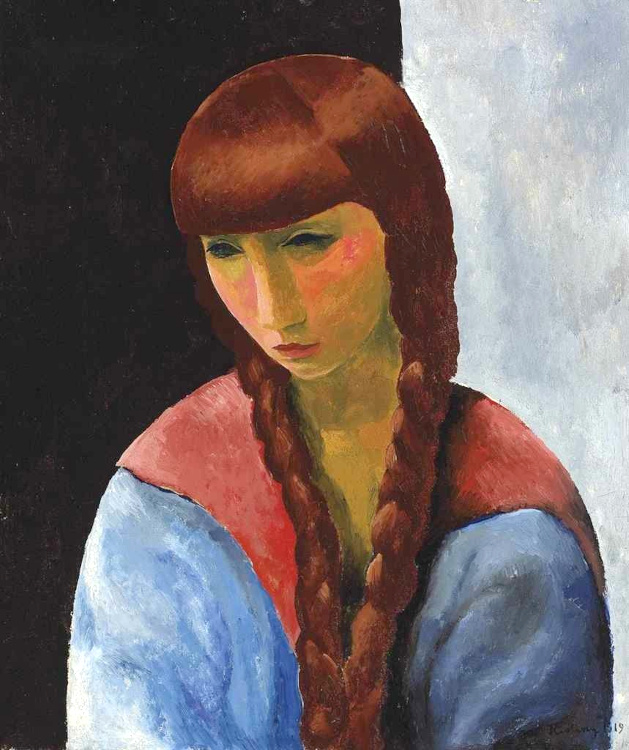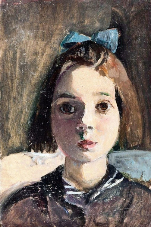 Lorsque surgissent ces périodes où l'on tricote des écharpes d'idées sombres, où l'on dessine des précipices dans les marges de nos carnets et où "Grodek" de Georg Trakl tourne en boucle dans notre tête, on aurait vite tendance à s'habiller aux couleurs de son humeur : noire d'encre. Ce tableau de Lotte Laserstein nous ouvre cependant une autre piste : laisser la mélancolie s'exprimer en et bleu gris. En matière de combinaisons de couleurs, tout est affaire d'interactions subtiles. Sur cette toile de Gari Melchers, rien ne vient briser le rythme du dialogue chromatique et, pourtant, on est loin d'une palette soporifique. Associé à une base chaude et traversé de touches de vert frais, le mauve génère en effet une sensation d'équilibre à la fois évidente et vivifiante qui nous donne envie de la reproduire immédiatement dans notre garde-robe ( + un marcel blanc + + ces baskets). Avec cette affiche qui fait naître en nous le désir de revoir les films de Truffaut, de déguster des marrons chauds et de dessiner une marelle sur le trottoir, L. John Harris nous donne envie de réveiller nos pardessus camel, blazers sépia et autres d'un moelleux bonnet rouge coquelicot (voir , et ). Il faut dire que cette teinte possède le pouvoir quasi magique de transformer une pièce potentiellement ennuyeuse en élément d'un duo aussi esthétique qu'impactant. … Si l'on imagine que c'est un châle que la soeur de Mme Renée Kisling porte sur les épaules (et qu'elle associe ici à une robe bleu azur), l'ensemble n'en évoque pas moins une veste de jogging graphique des années 70. Un blouson léger dont l'empiècement color-block invite à jouer avec d'autres motifs reprenant les mêmes tonalités ou à être mixé à une pièce dont l'énergie sera à des années-lumière de l'univers sportswear (on pourra ainsi tenter de marier cette veste avec cette jupe). Du vert de son feuillage au marron clair de son écorce, en passant par l'orange de ses fruits, l'abricotier semble avoir fourni à H.Craig Hanna la palette idéale pour composer un look dont la dimension organique diffuse une fraîcheur paradoxalement chaleureuse (voir ici). Face à cette toile, associer pantalon en velours marron moiré, sweat en éponge vert forêt et paire de boucles d'oreilles clémentine devient soudainement une évidence.