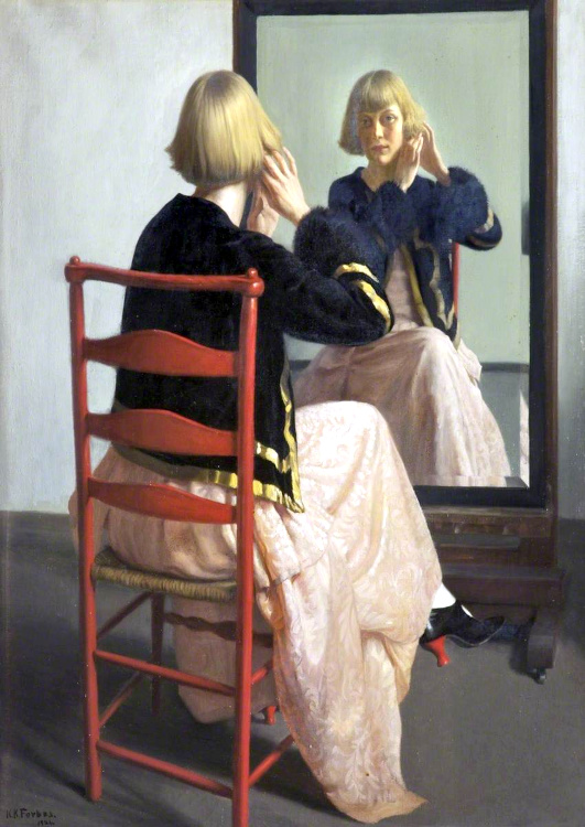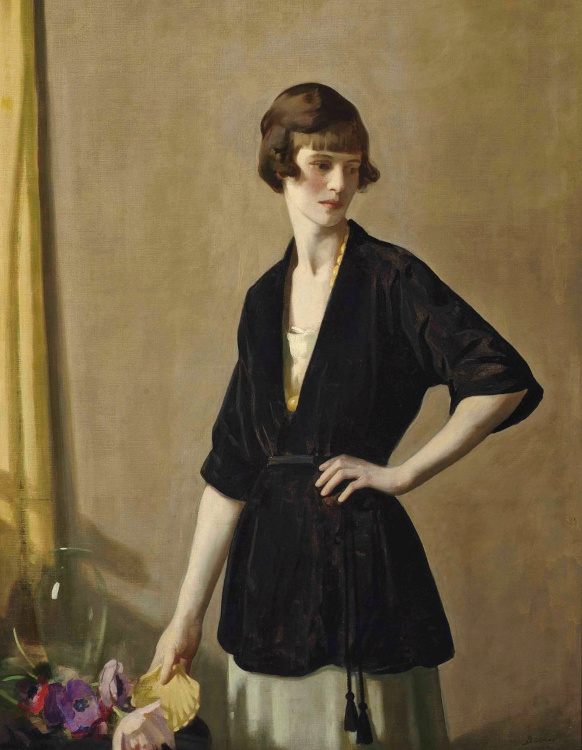 On n'hésitera également pas à remplacer le fameux tee-shirt blanc dépassant du col de nos pulls par un modèle bleu ciel (Kris Knight), à troquer nos petites robes noires contre un modèle chocolat au lait (Tadeusz Styka), à réveiller nos jupes à carreaux kaki au contact d'un pull bleu outremer (le même que celui en toile de fond de cette oeuvre de Nikoleta Sekulovic), à acter que si le duo blanc/marron peut parfois manquer de subtilité, il en va tout autrement du mix bleu clair ultra dilué/marron (Jean-Pierre Cassigneul), à penser à cintrer nos longues robes noires avec une étole de soie pastel (George Hendrik Breitner), à nous souvenir que dégager le cou accentue l'élégance de n'importe quelle silhouette (Archibald George Barnes), à marier marron et lavande (Gari Melchers) et à garder en tête la règle du 90% / 10% en matière de look noir et blanc (Sir Herbert James Gunn).