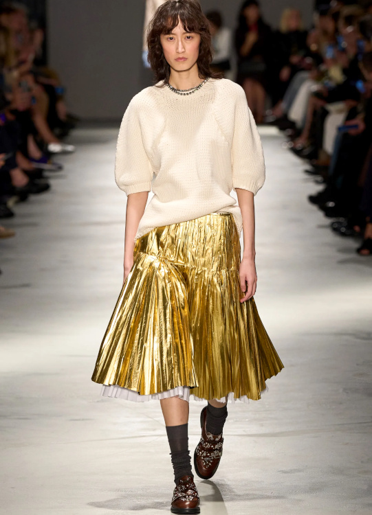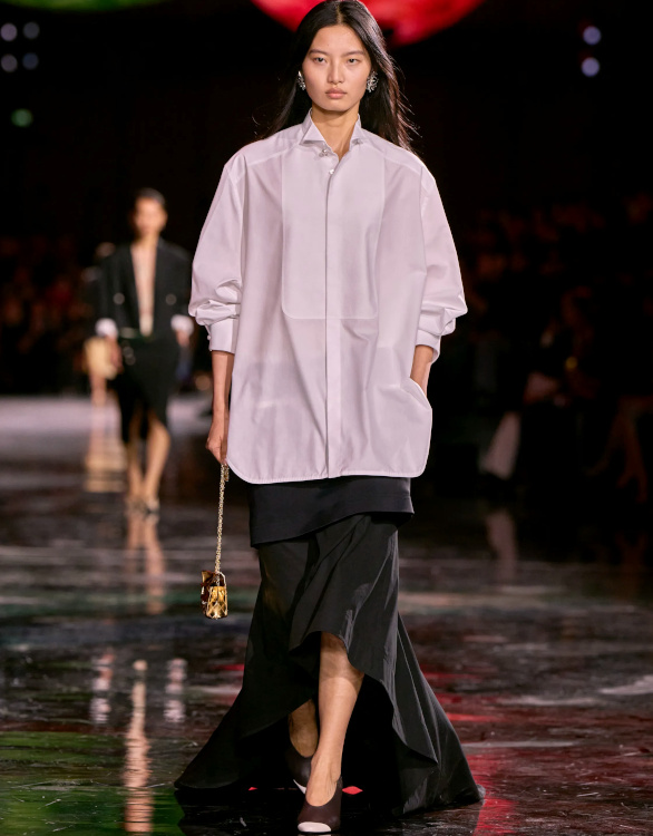 Faire de l chemise d'homme et du pull sobre les meilleurs amis des jupes de bal (Chanel, Bottega Veneta).