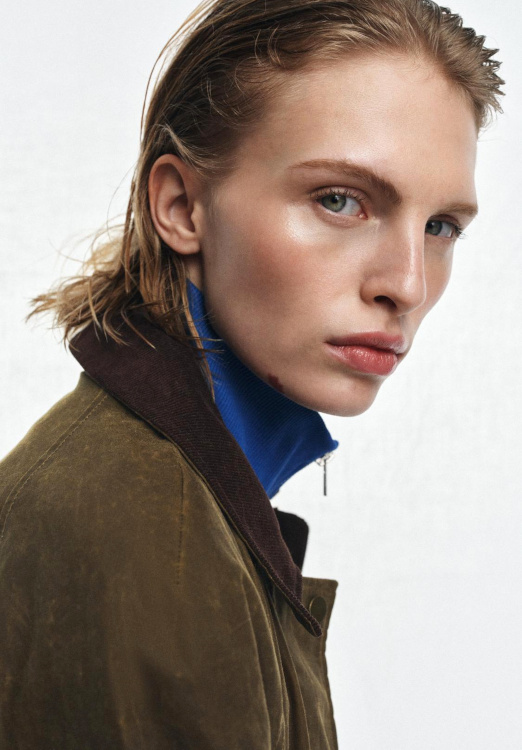 Glisser un pull bleu électrique sous une veste d'inspiration chasse (Zara).