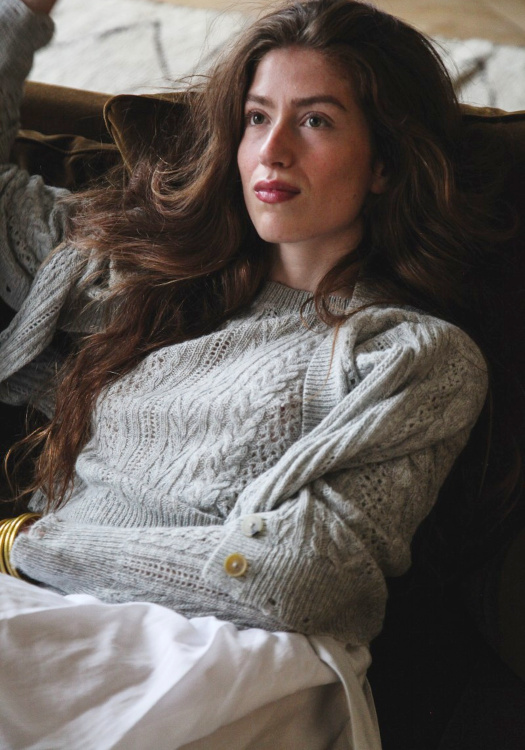 Réchauffer ses jupons ultra légers au contact d'un pull fin et douillet (Jane Gustavsson).