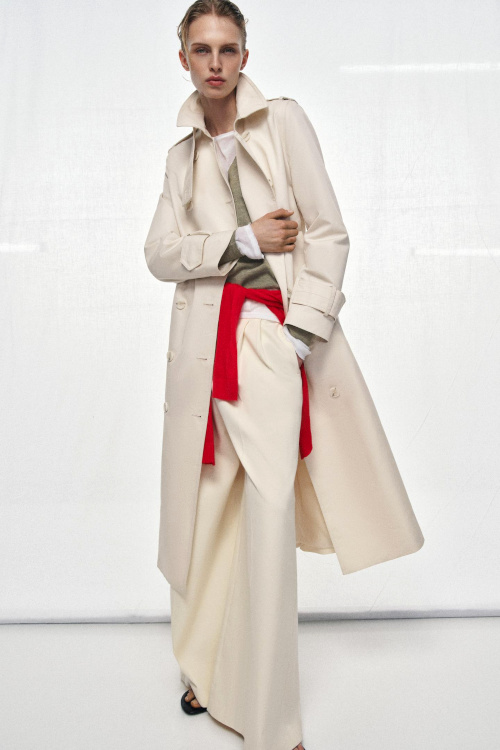 Rehausser les duos jaune pâle/beige et blanc cassé/gris via une touche de rouge (&Other Stories, Zara).