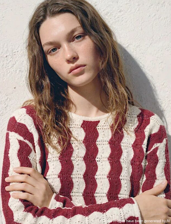 Moi qui fais si attention à ne pas publier de personnages générés par IA sur le site, moi qui me targue de savoir repérer les détails censés alerter (un bijou sans ombre, une racine des cheveux floutée, des doigts étranges…), je suis tombée dans le panneau. J'ai admiré cette fille. J'ai eu envie de son pull. Peut-être même, l'espace d'un instant, ai-je désiré quelque chose de plus diffus : son allure, son aura, ce que cette image semblait raconter d'elle.
