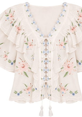Porter le blazer ouvert ou en cape sur les épaules. Opter pour une coiffure dégageant bien le cou. Remplacer à l'envi le pantalon par un jean large blanc.