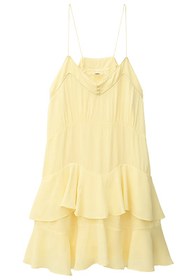 Porter le blazer ouvert sur la robe. Opter pour un chignon bas. Le sac pourra être porté à la main ou en pochette. Ne pas hésiter à glisser un marcel blanc sous la robe.